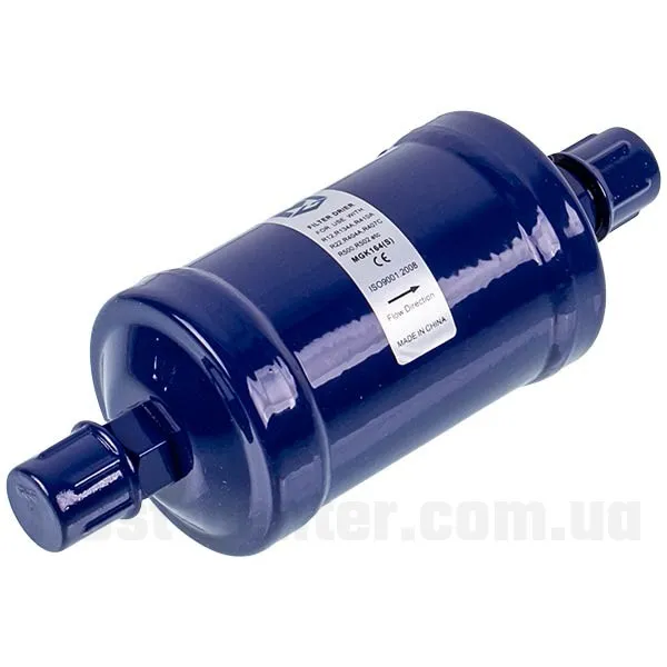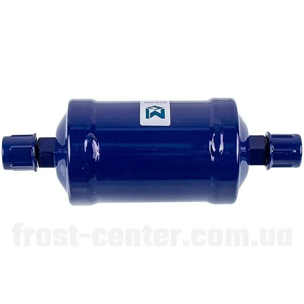 Фільтр-осушувач призначений для ефективного очищення холодильного контуру від вологи та дрібних механічних часток. Він встановлюється в рідинну лінію між конденсатором і капілярною трубкою, запобігаючи обмерзанню системи та засміченню капіляра. Корпус виготовлений із металу та заповнений адсорбентом із високою поглинальною здатністю. Конструкція забезпечує надійну герметизацію з’єднання, що гарантує стабільну та тривалу роботу холодильного обладнання.